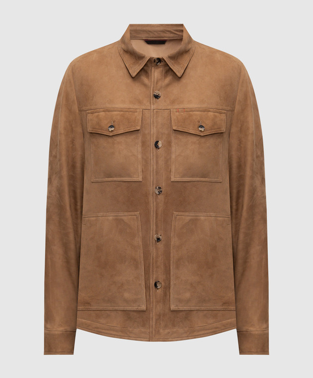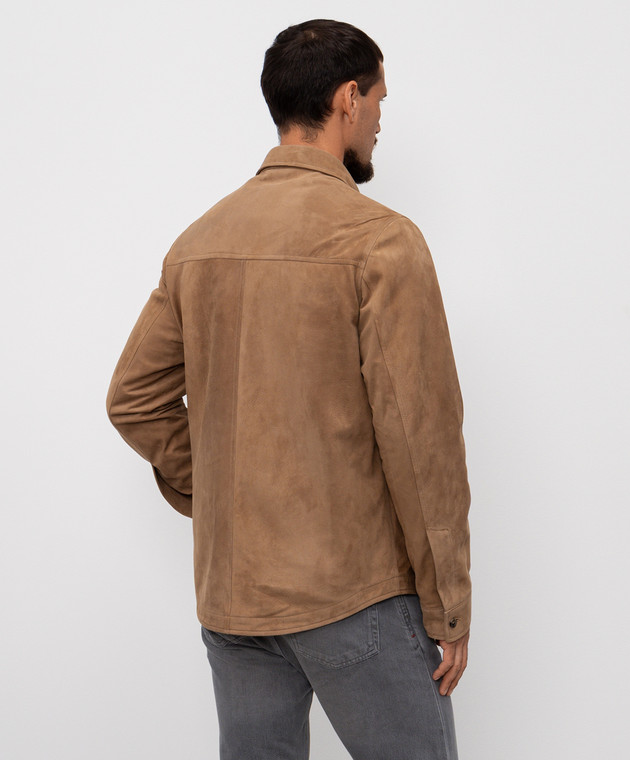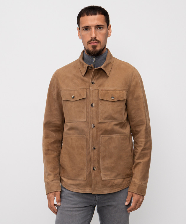 Бежева куртка з нубуку в стилі сорочки