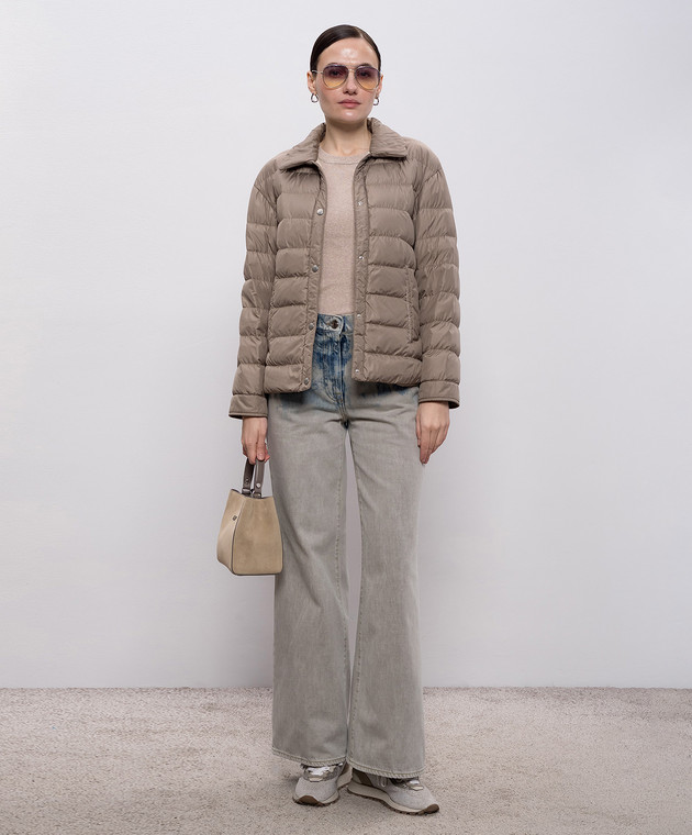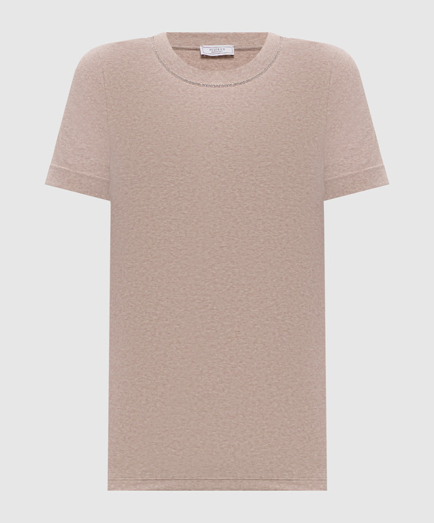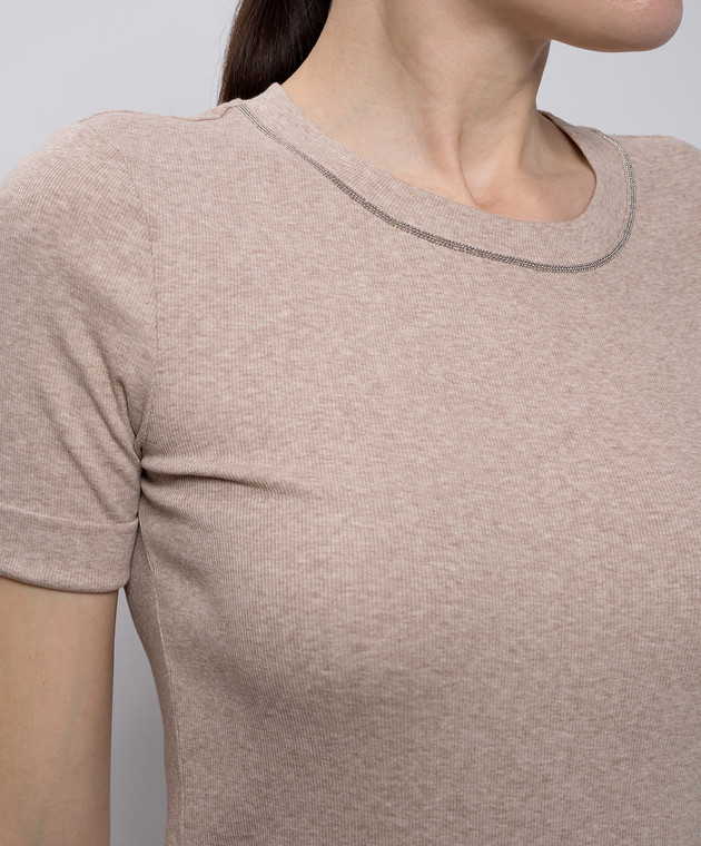 Бежева меланжева футболка з відворотами