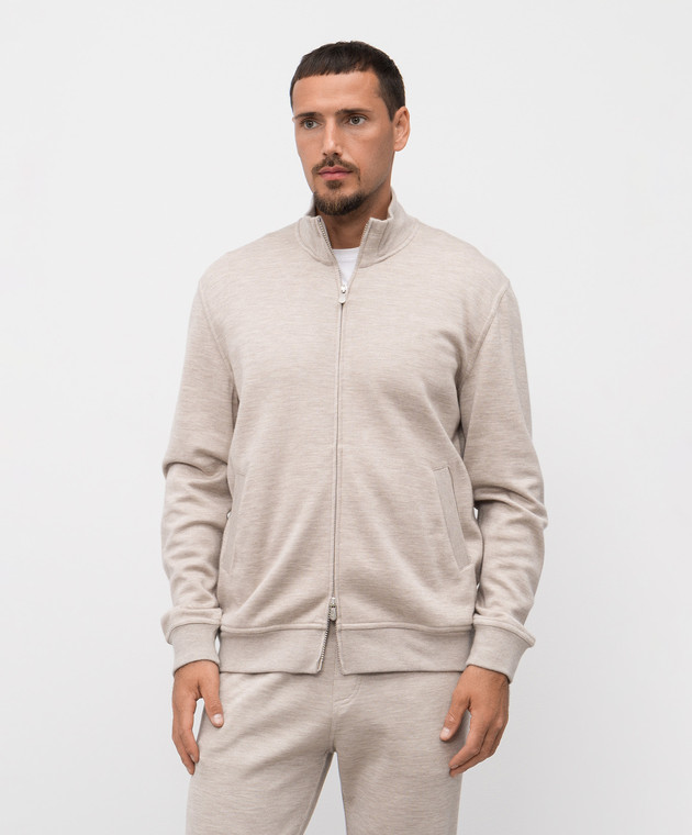 Бежева меланжева спортивна куртка з кашеміру та шовку