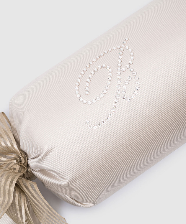 Бежева подушка-валик Caram з монограмою логотипа з кристалів Swarovski