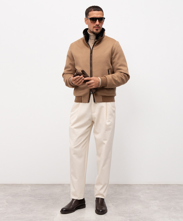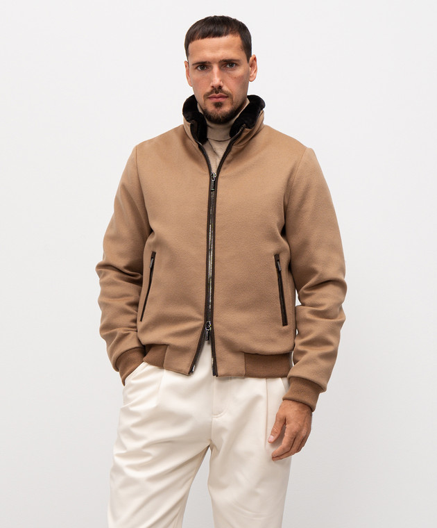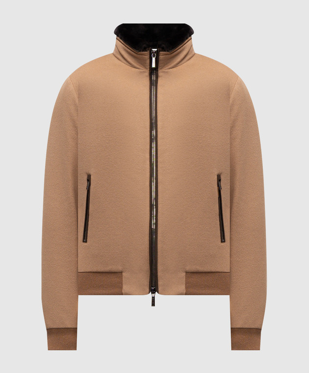 Бежева пухова куртка BELLATI з вовни і кашеміру з хутром