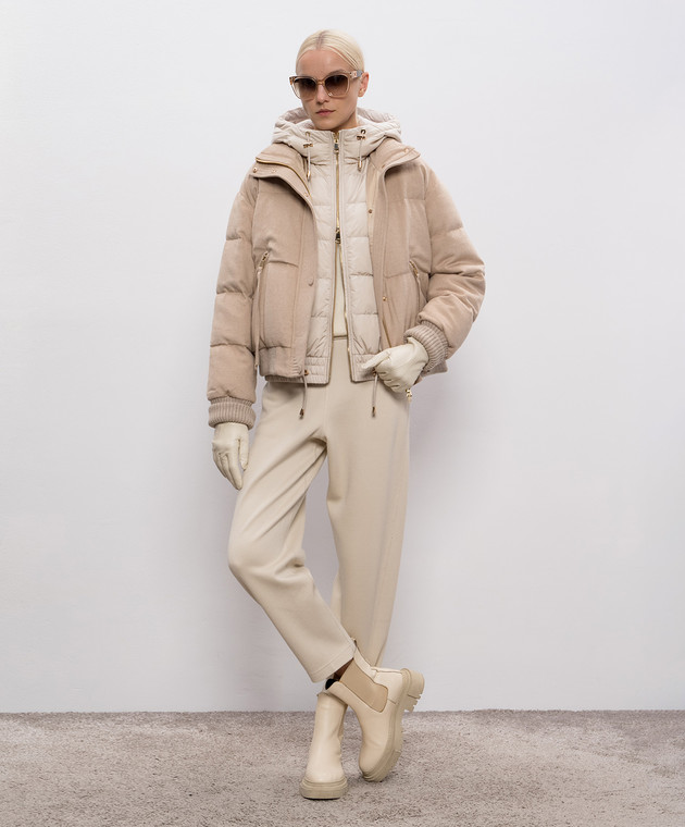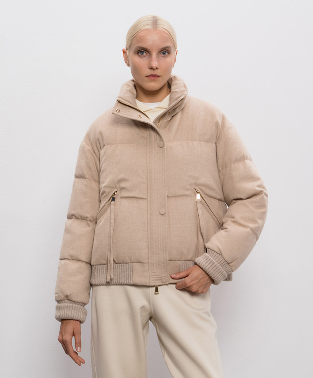 Бежева пухова куртка із шовку та вовни верблюда