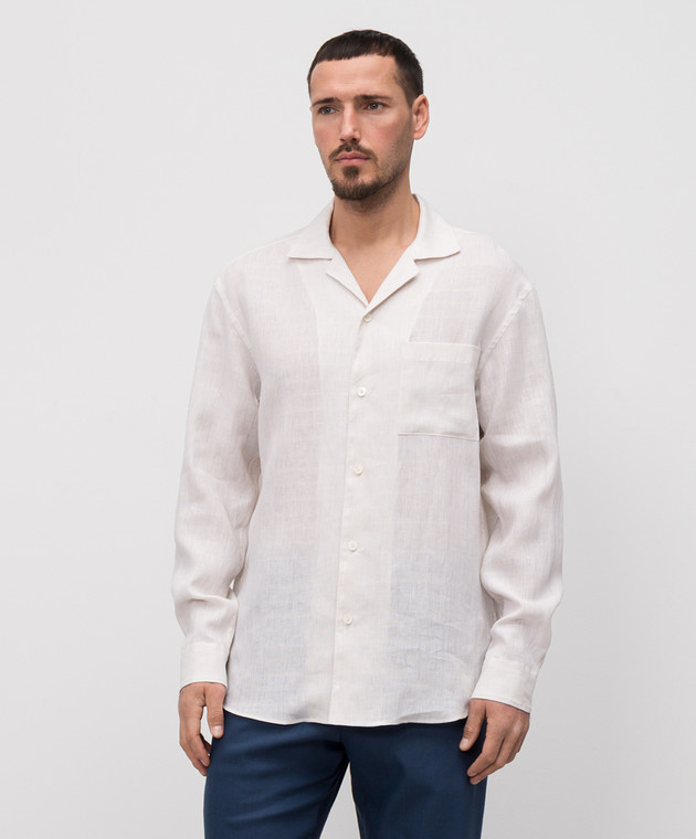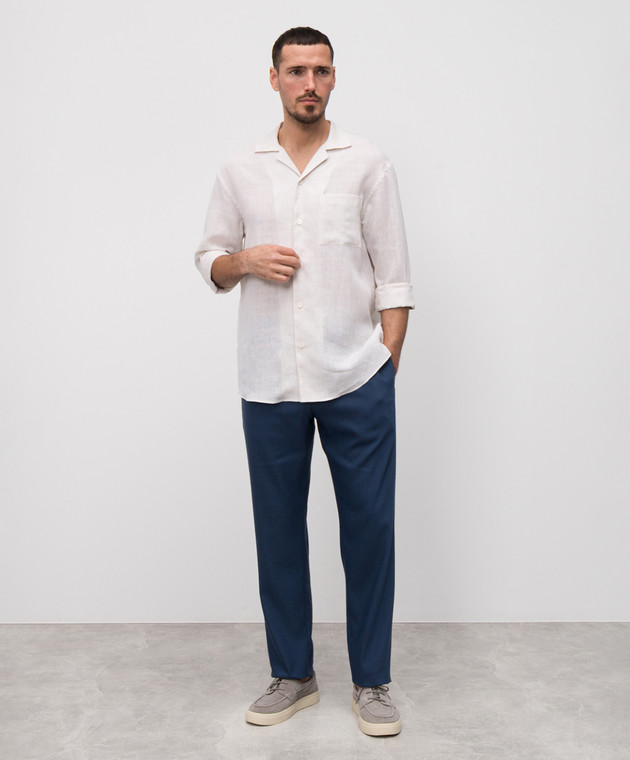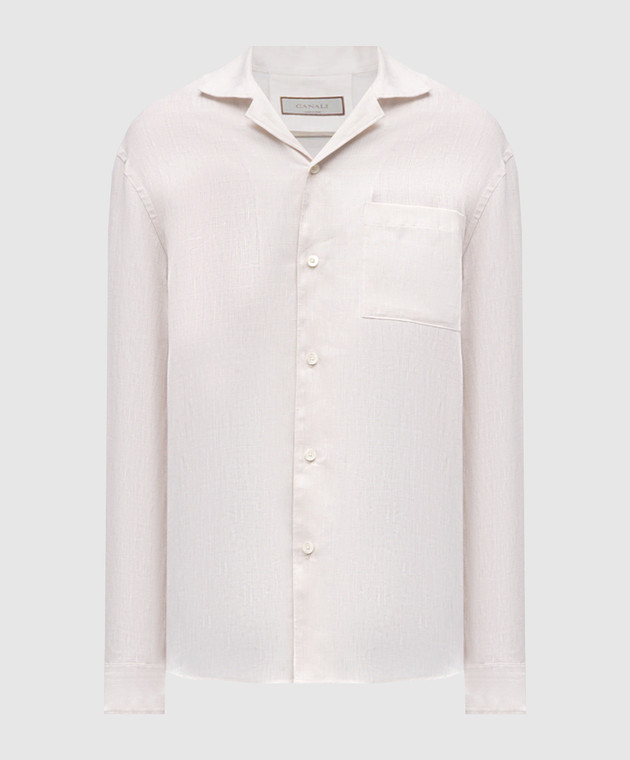 Бежева сорочка з льону у візерунок