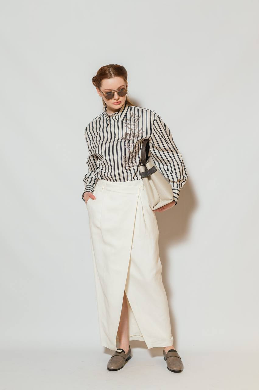 • Декор візерунок смужка, люрекс, паєтки, вишивка Herbarium, фігурний низ, бантова складка