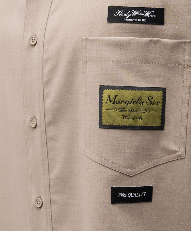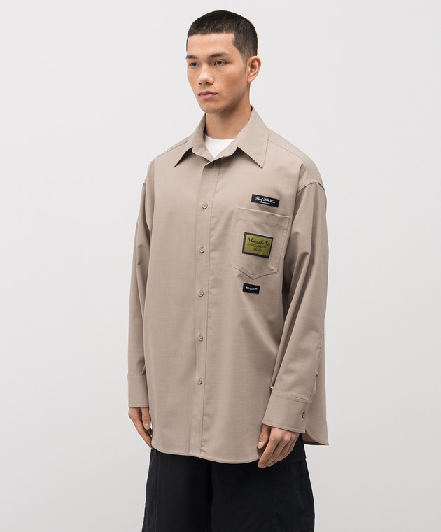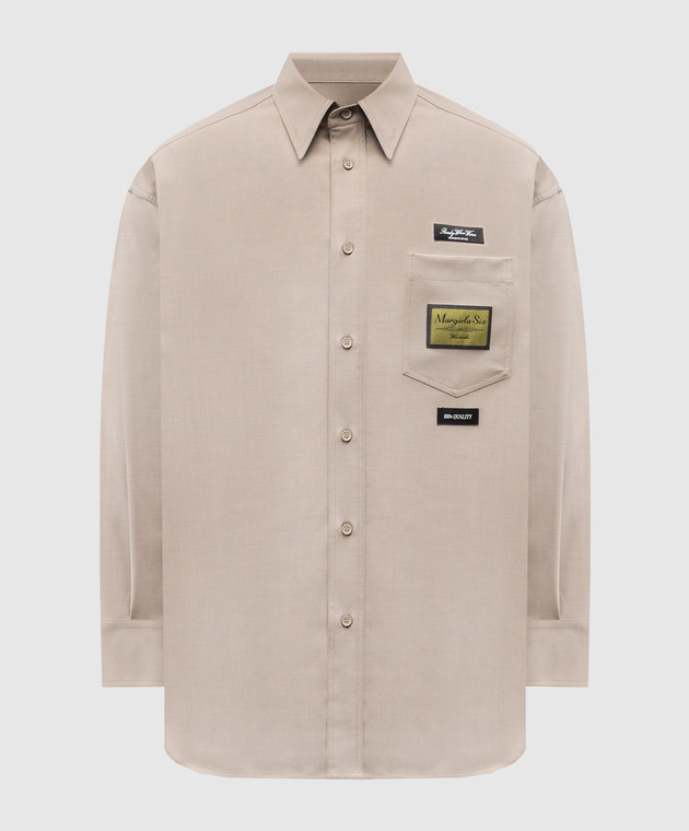 Бежева сорочка з вовною з брендовими нашивками