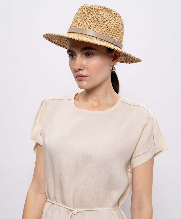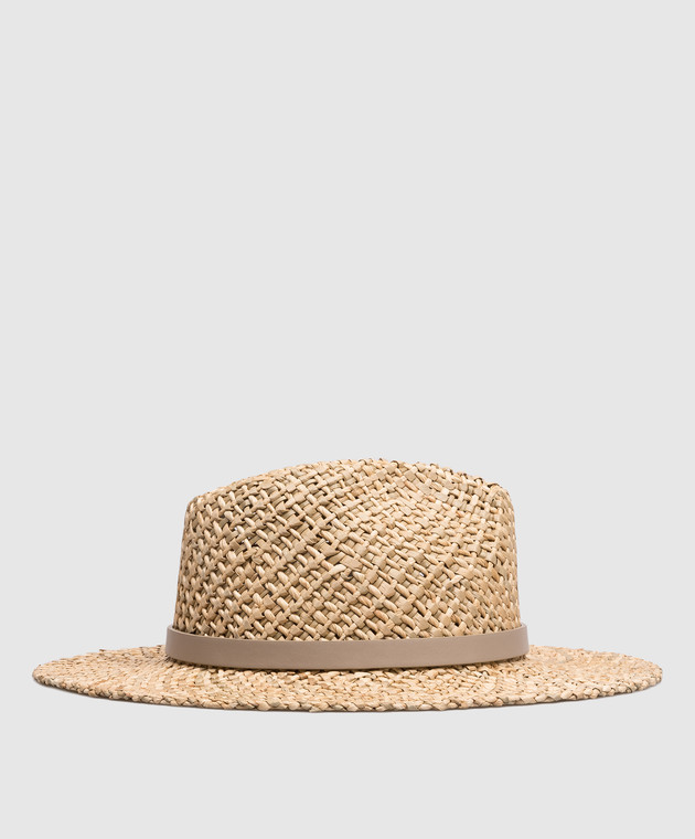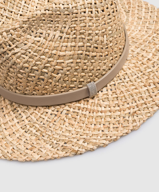 Бежевий солом'яний капелюх з ланцюжком моніль