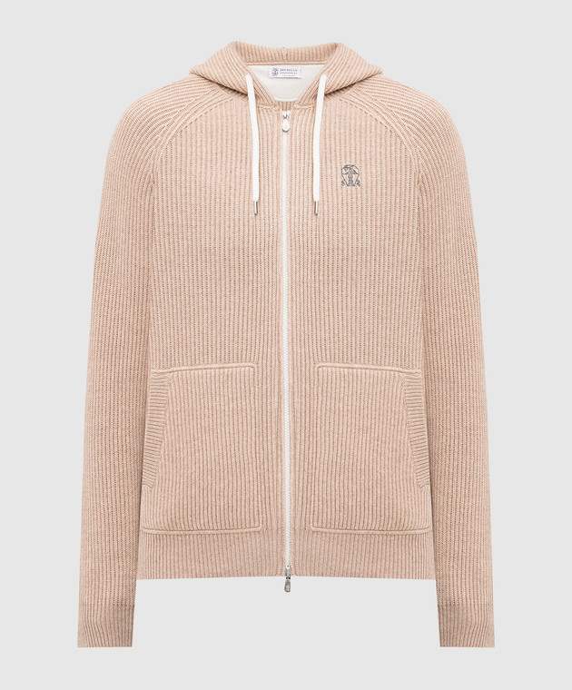 Бежева спортивна куртка з кашеміру з вишивкою логотипа