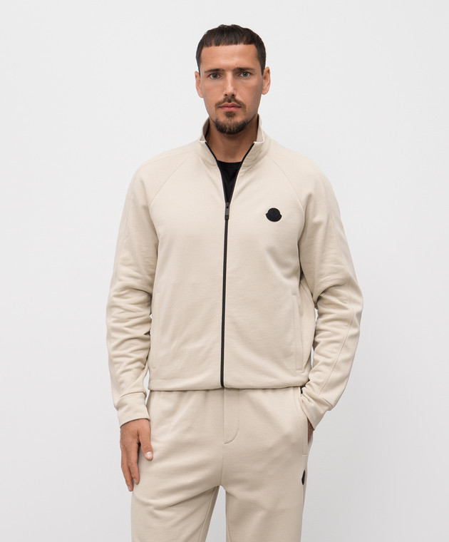 Бежева спортивна куртка з нашивкою логотипа