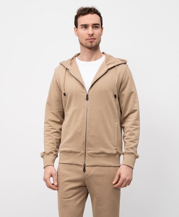 Бежева спортивна куртка з шовком з емблемою логотипа