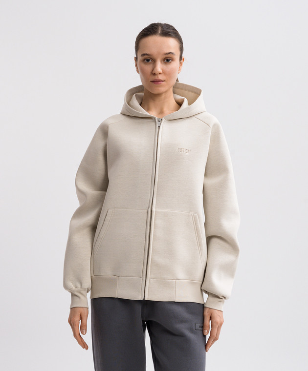 Бежева спортивна куртка з тисненням логотипа