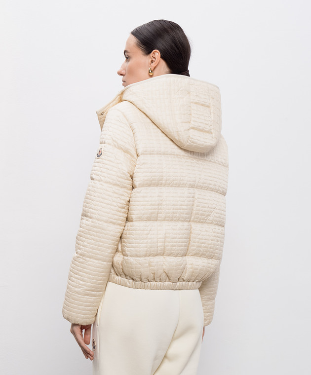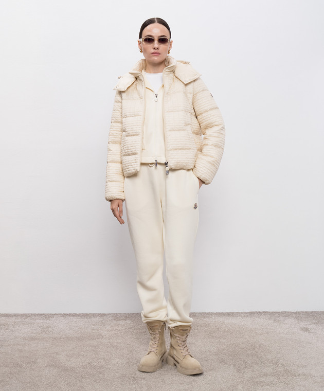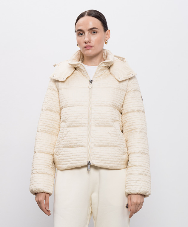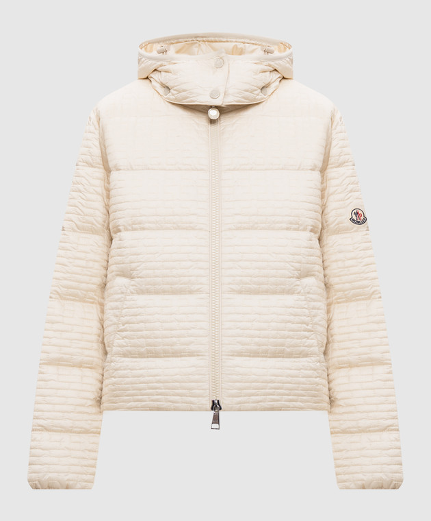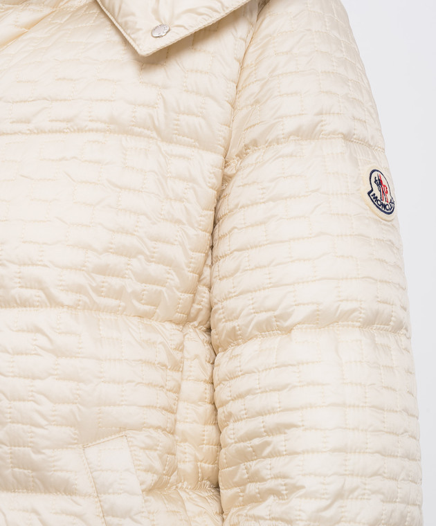 Бежева стьобана пухова куртка з нашивкою логотипа