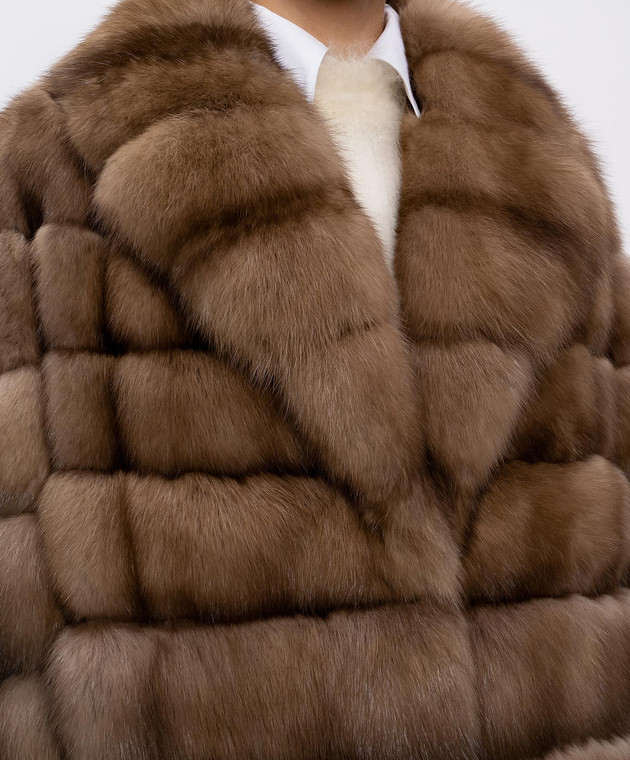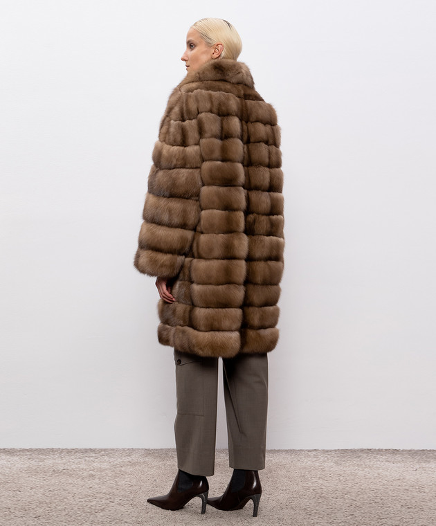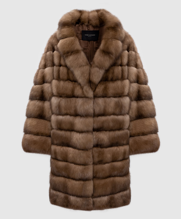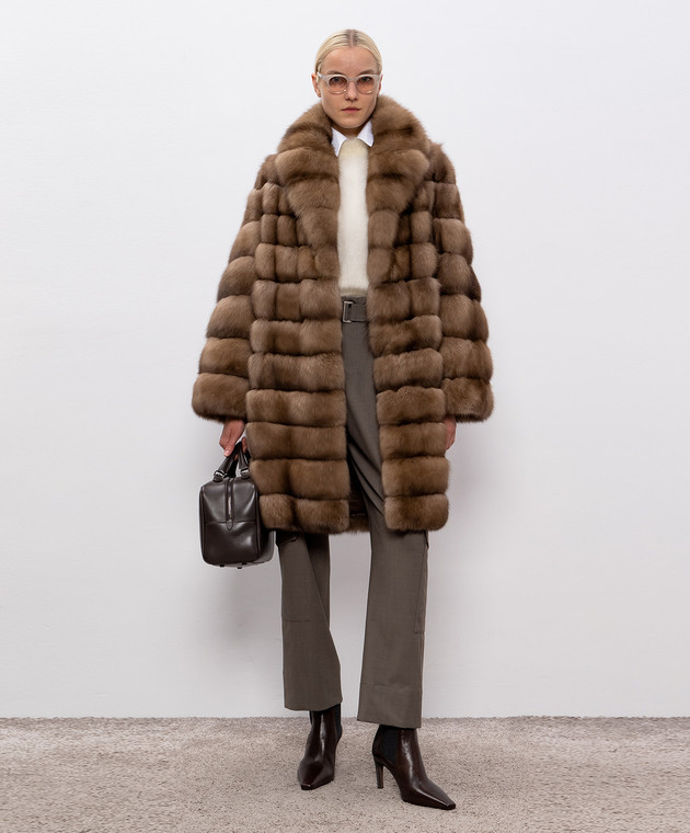 Бежева шуба з хутра соболя прямого крою