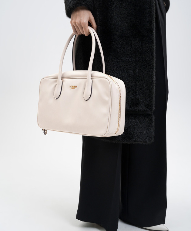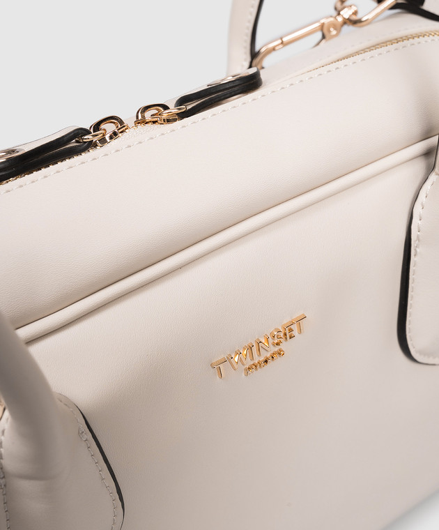 Бежева сумка-боулер з логотипом