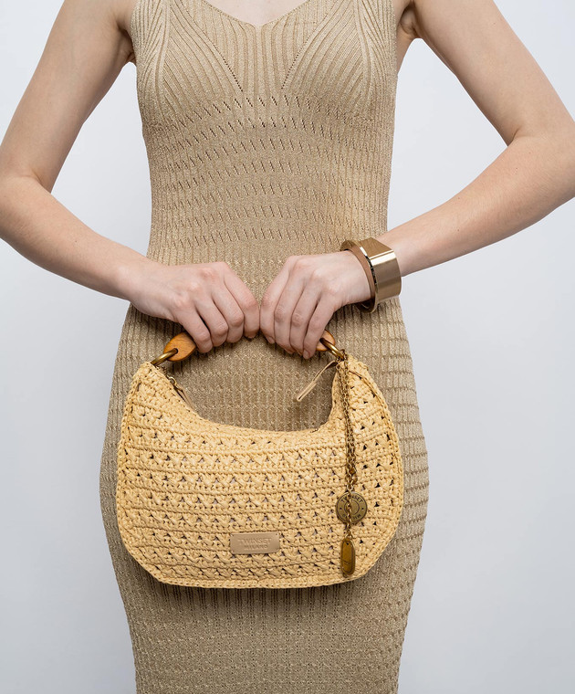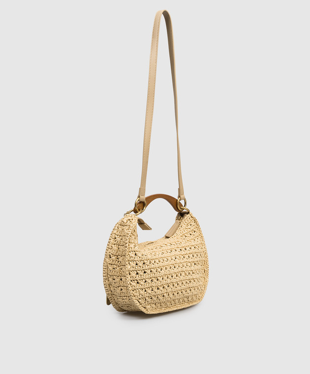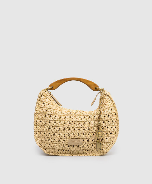 Бежева сумка-хобо Croissant з рафії з нашивкою логотипа
