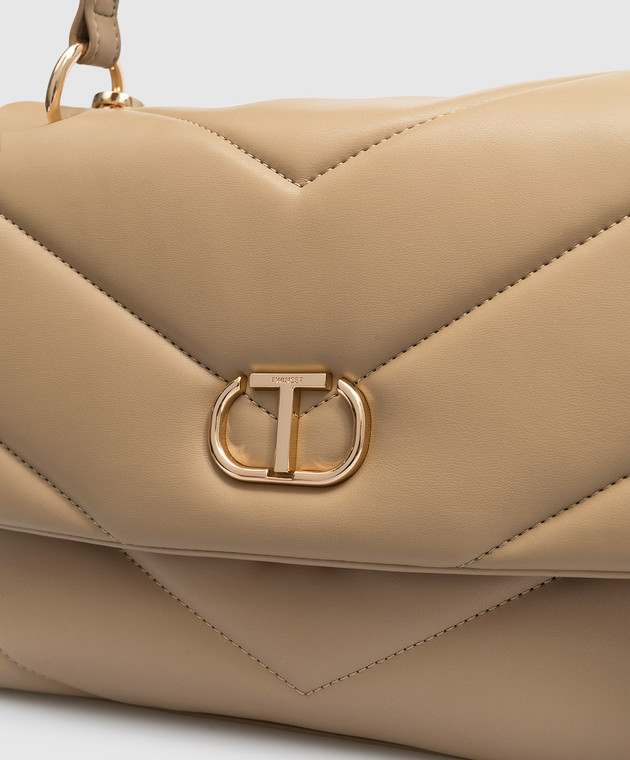 Бежева сумка-месенджер Top Handle з логотипом Oval T