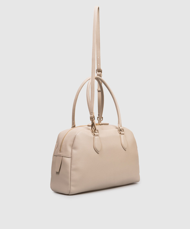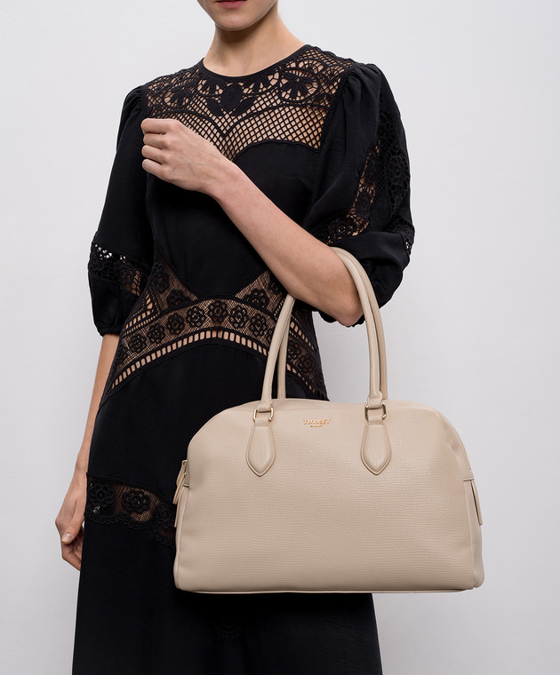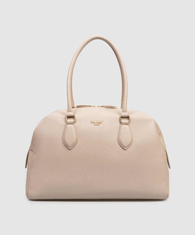 Бежева сумка-боулер з фактурним логотипом