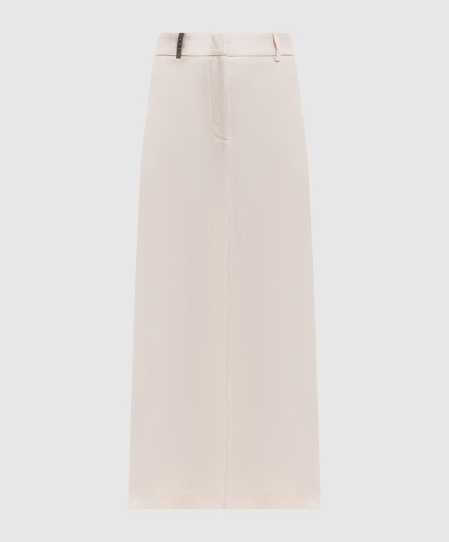Бежева спідниця міді з льоном