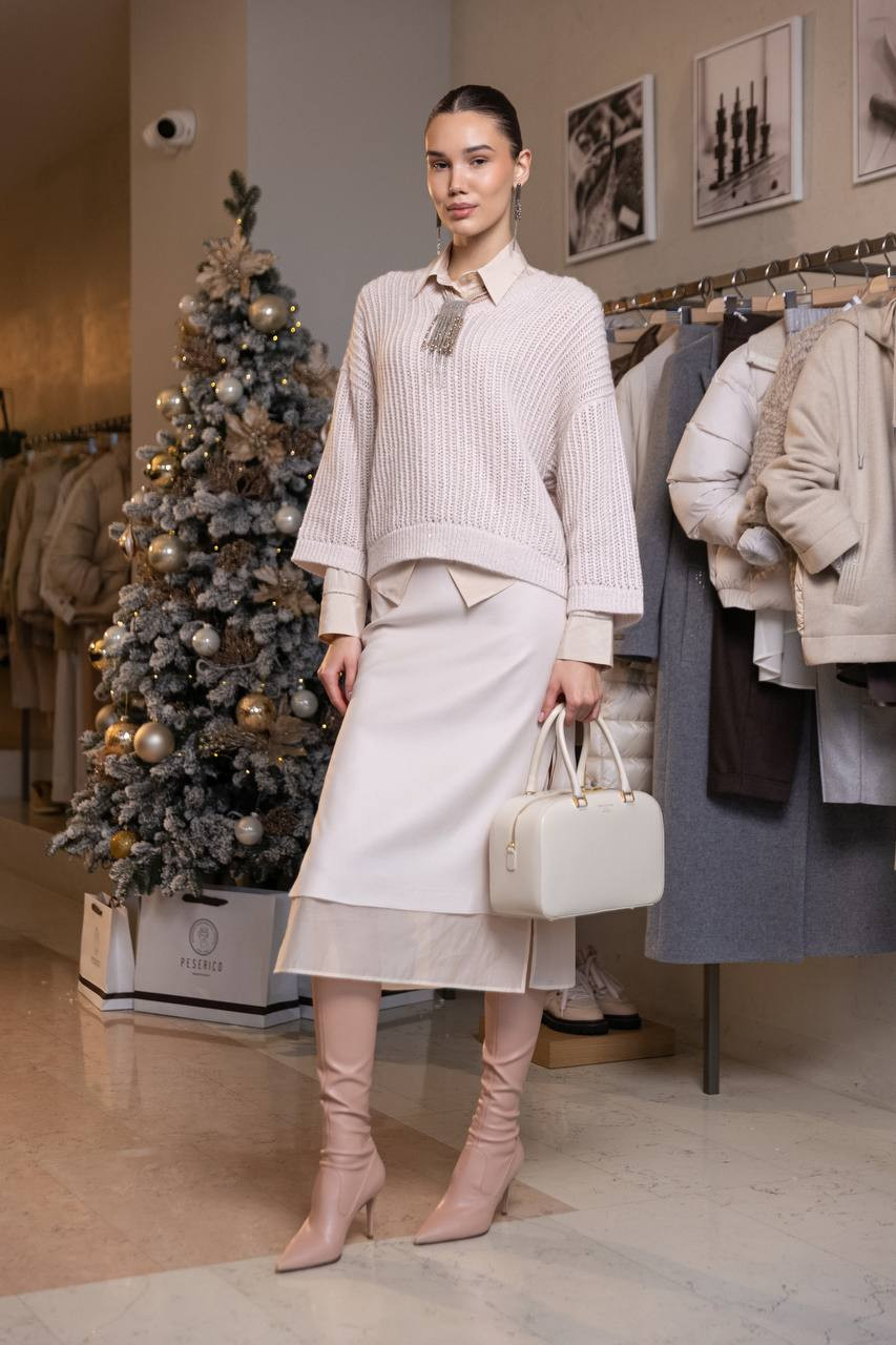 Бежева спідниця міді з вовною з розрізами