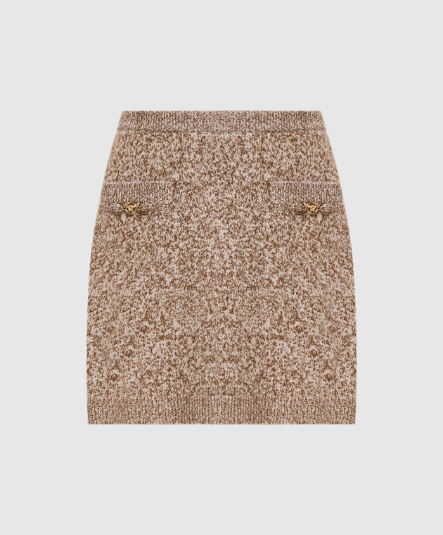 Бежева спідниця міні з вовни, кашеміру та шовку