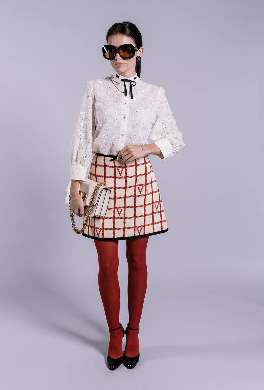 • Декор візерунок клітинка, монограма логотипа V, бант, контрастне окантування