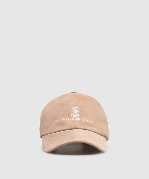 Бежева замшева кепка з вишивкою емблеми