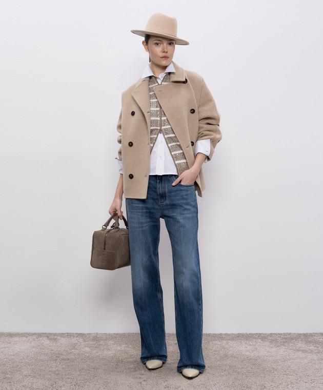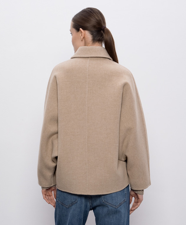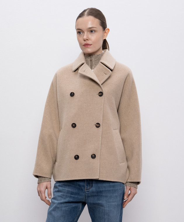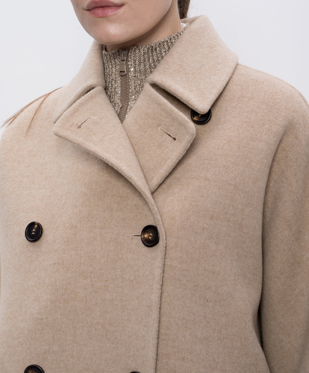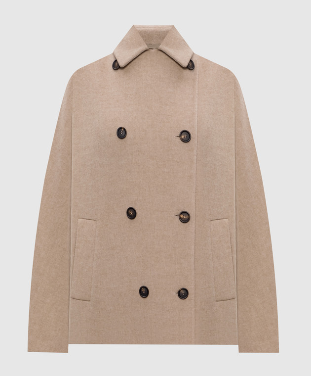 Бежеве двобортне пальто з вовни і кашеміру
