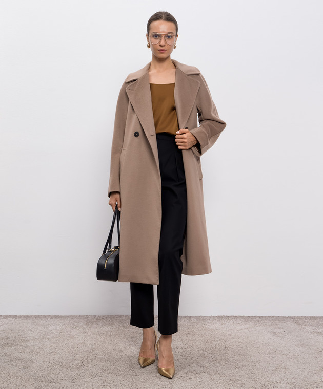 Бежеве двобортне пальто RESINA з вовни та кашеміру