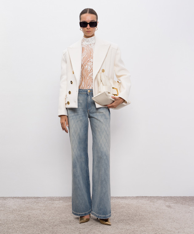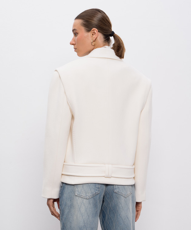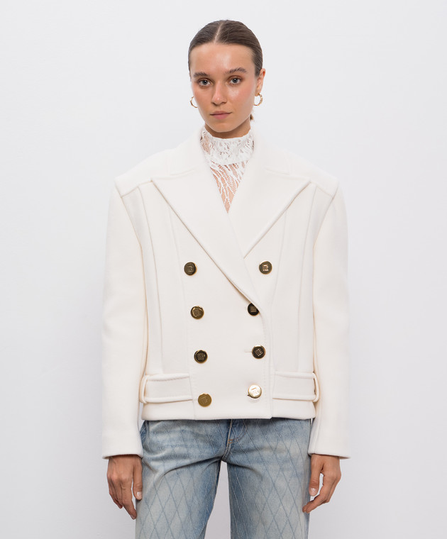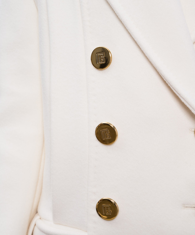 Бежеве двобортне укорочене пальто з вовни і кашеміру