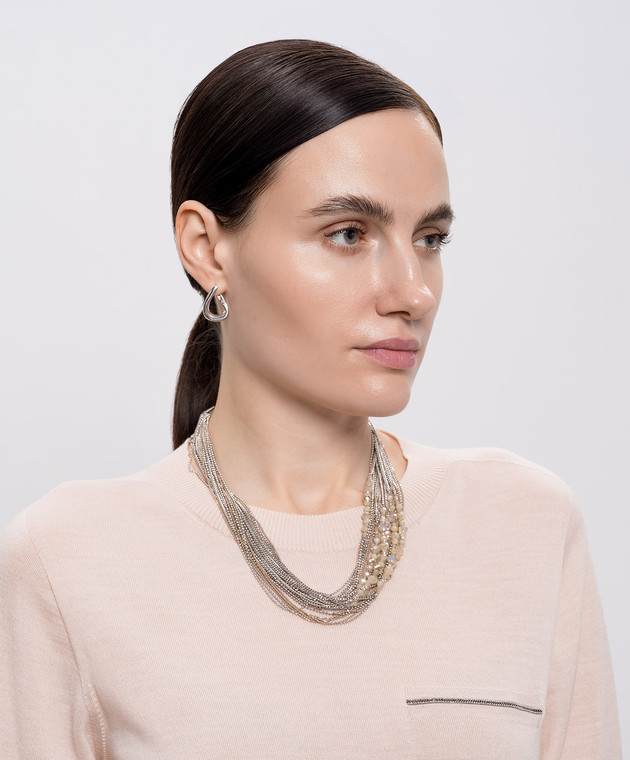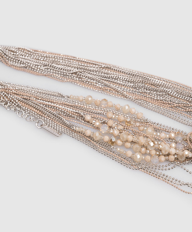 Бежеве кольє з ланцюжками та намистинами