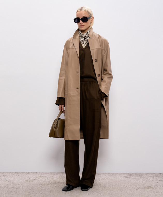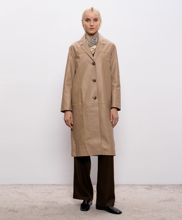 Бежеве шкіряне пальто