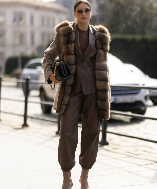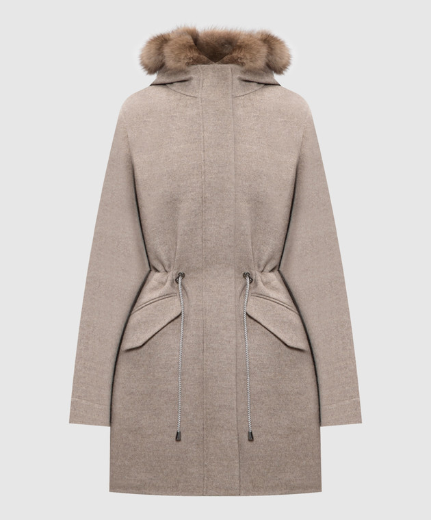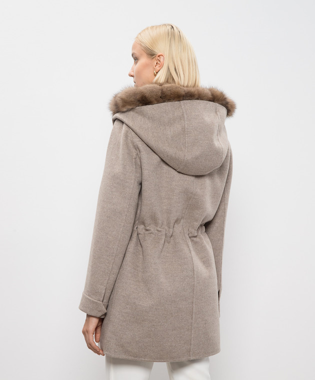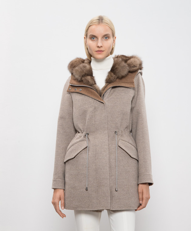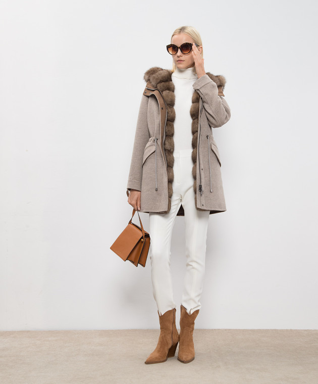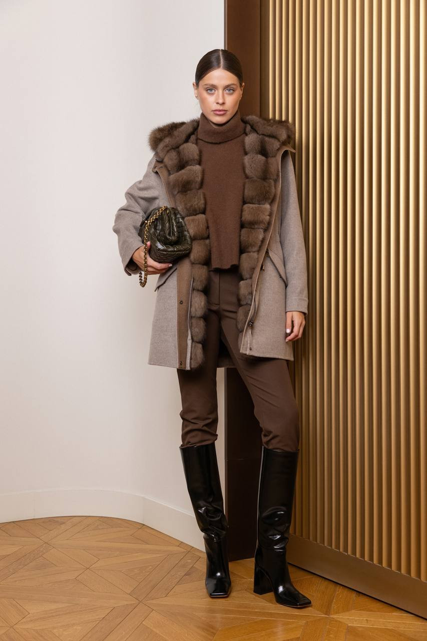 Бежеве пальто з вовни і кашеміру зі знімним жилетом з хутром соболя