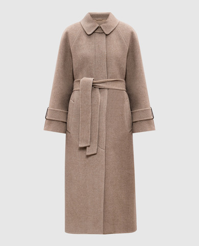 Бежеве пальто з вовни з ланцюжком моніль