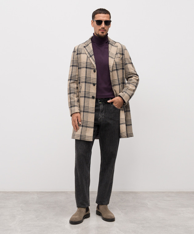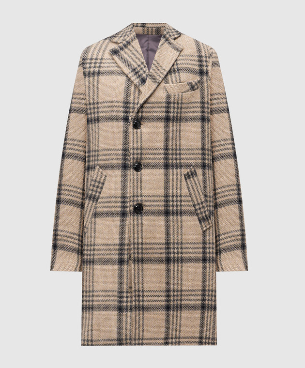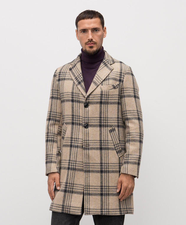 Бежеве пальто з вовною в клітинку