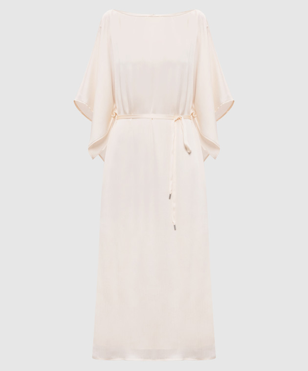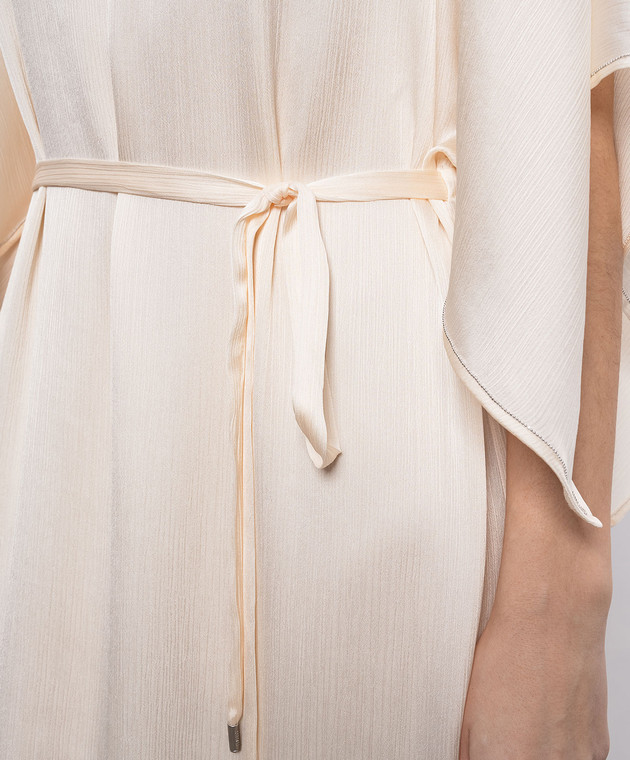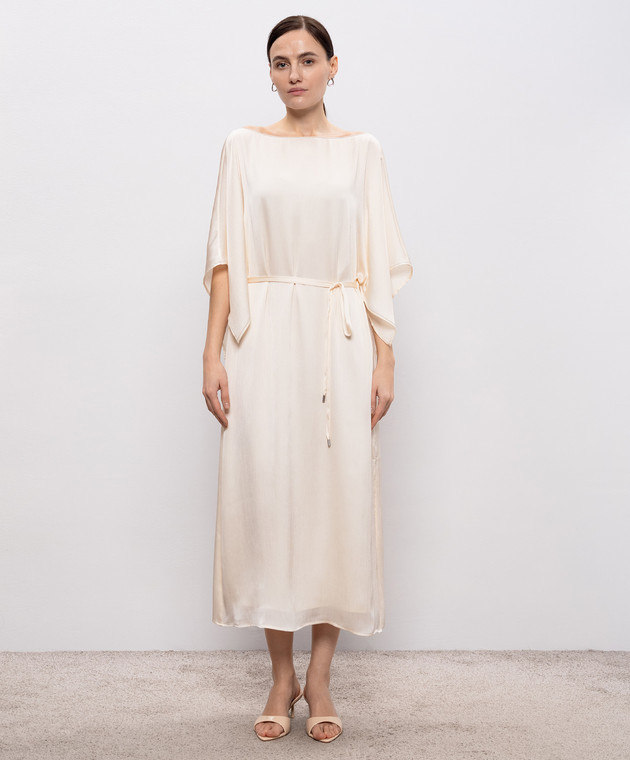Бежева сукня міді з поясом