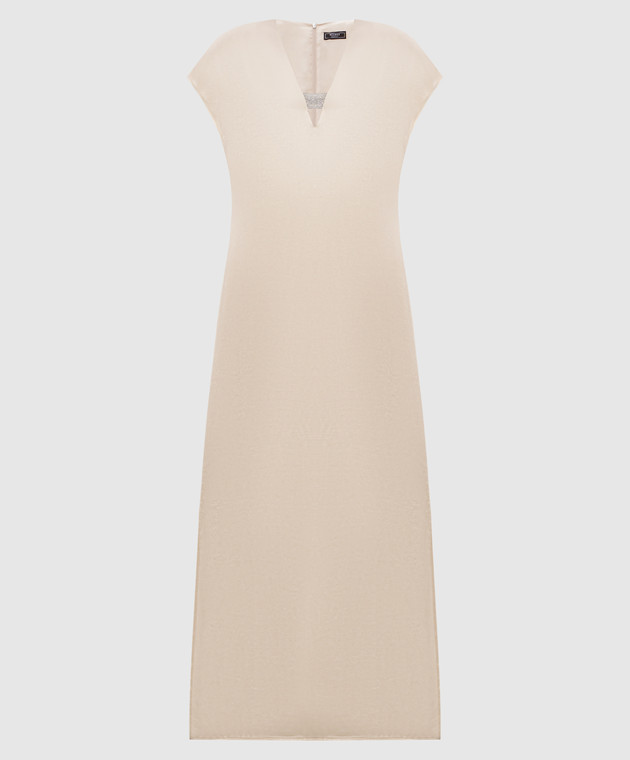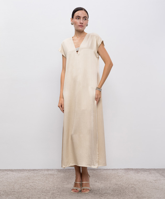 Бежева сукня міді з розрізами