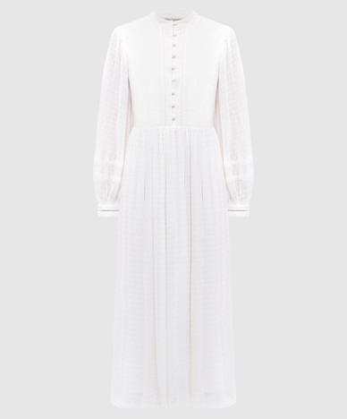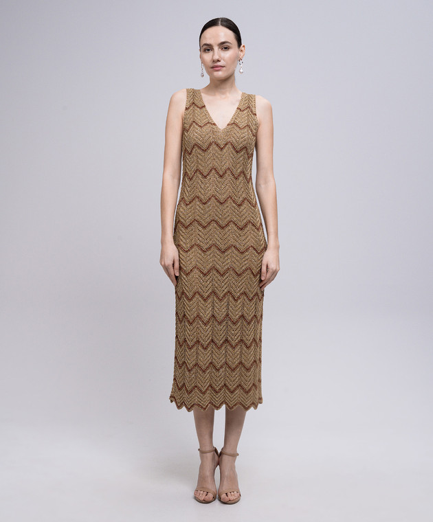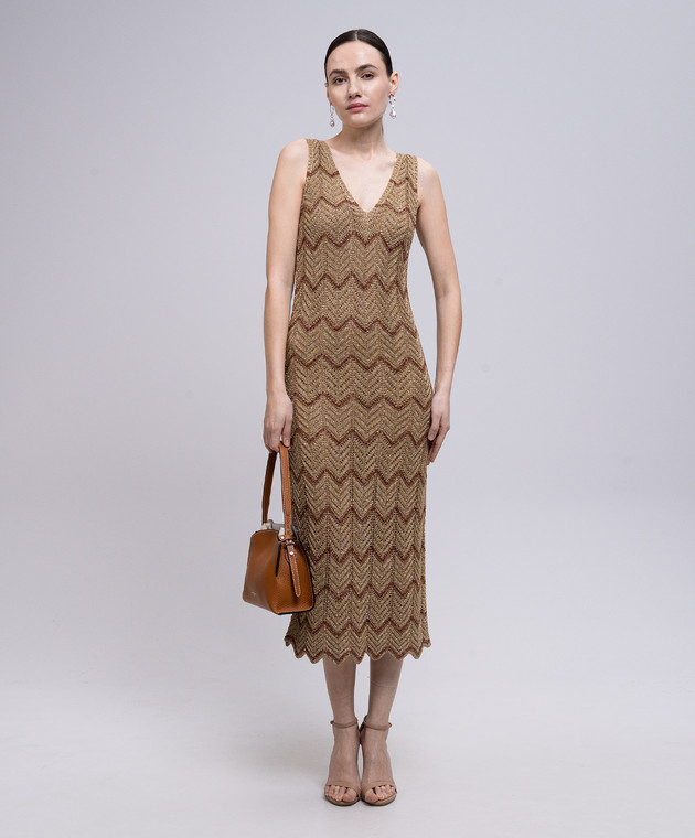 Бежева сукня міді у візерунок