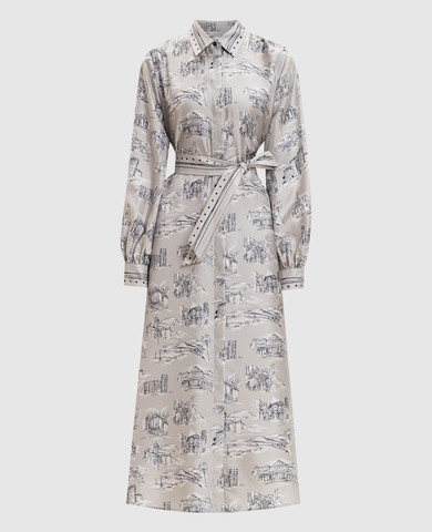 Бежева сукня-сорочка Chain Stripes із шовку