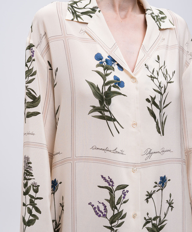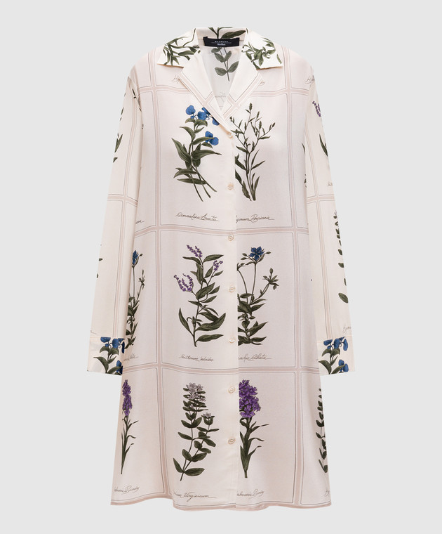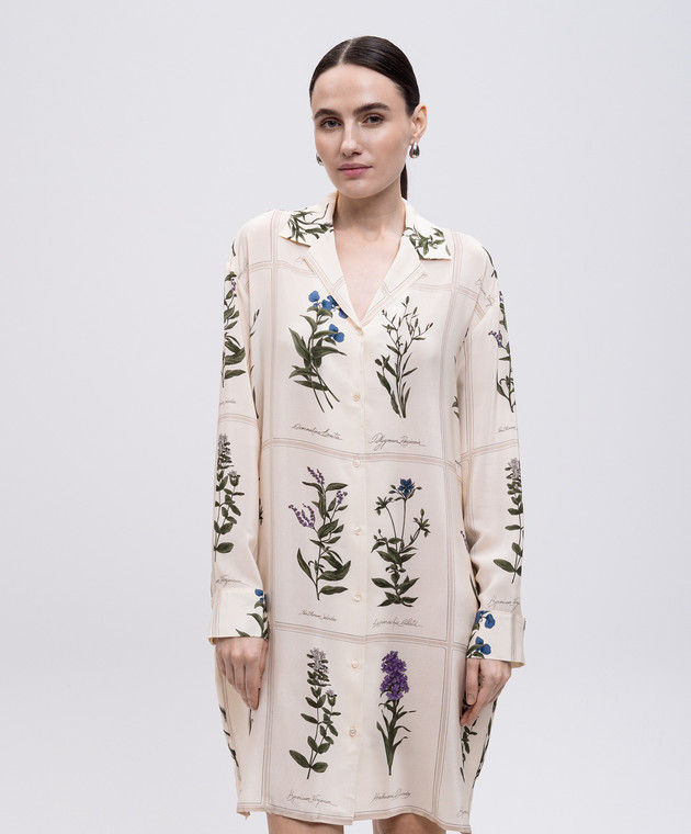 Бежева сукня-сорочка ECCESSO із шовку в квітковий принт