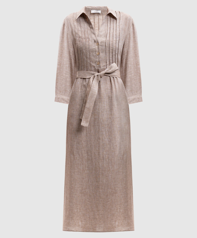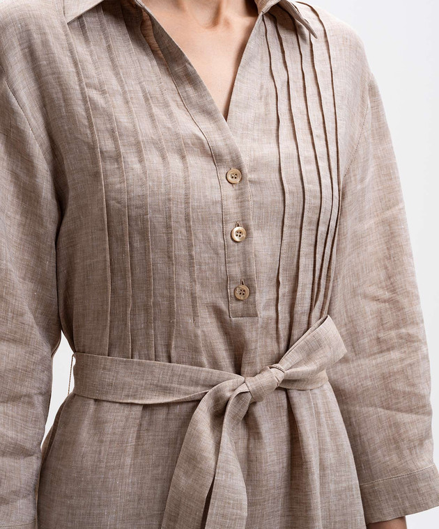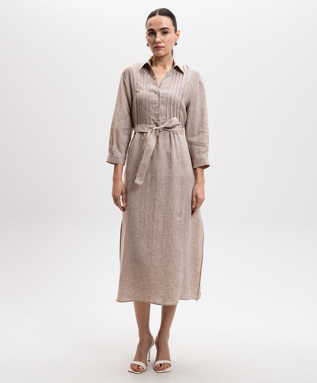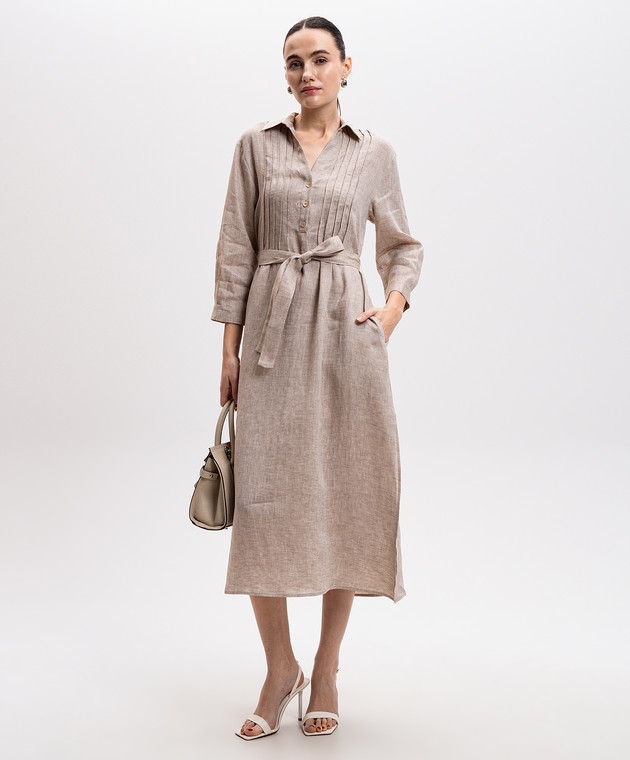 Бежева сукня-сорочка з льону з поясом