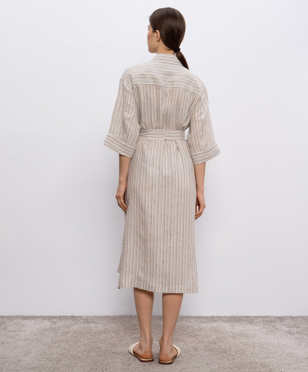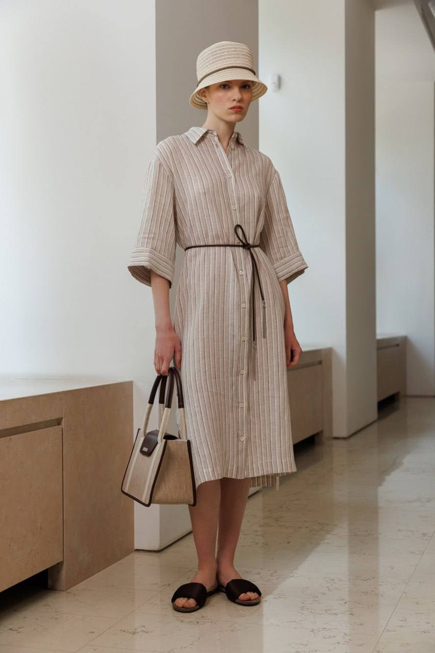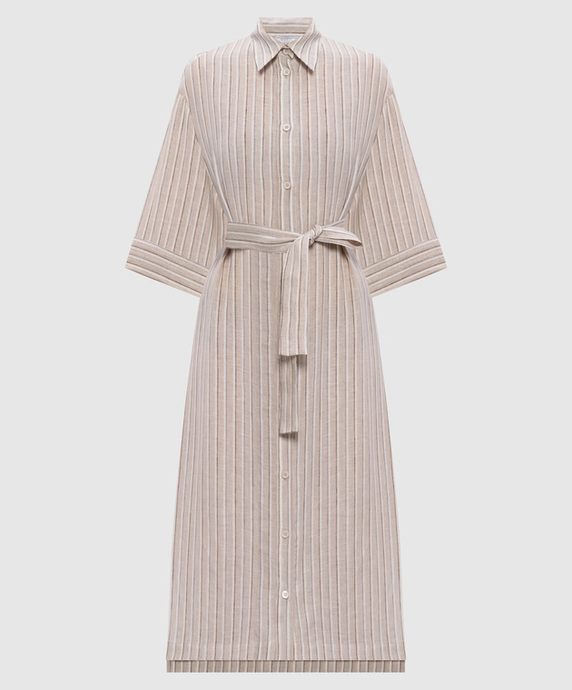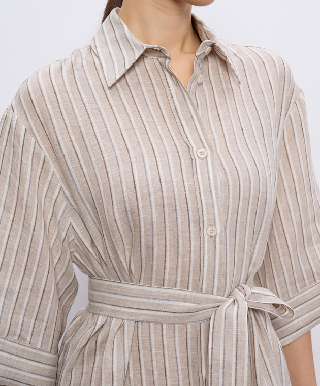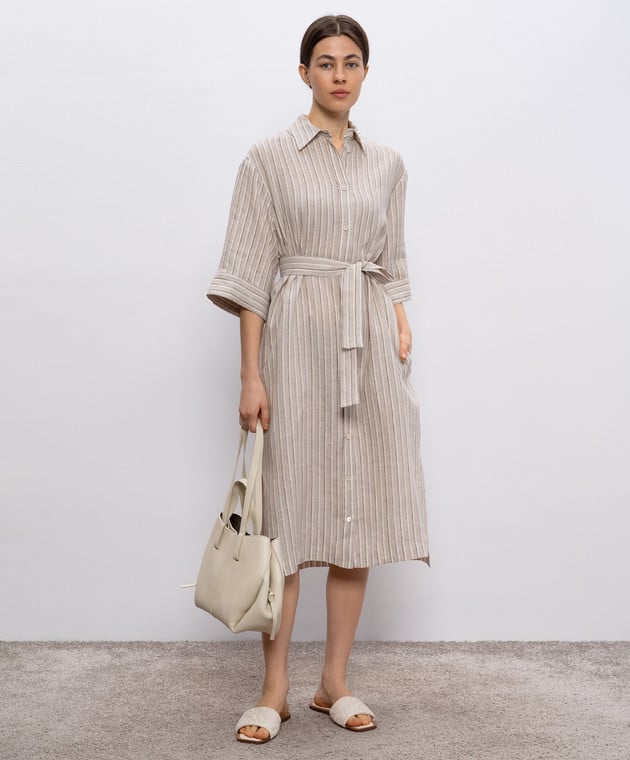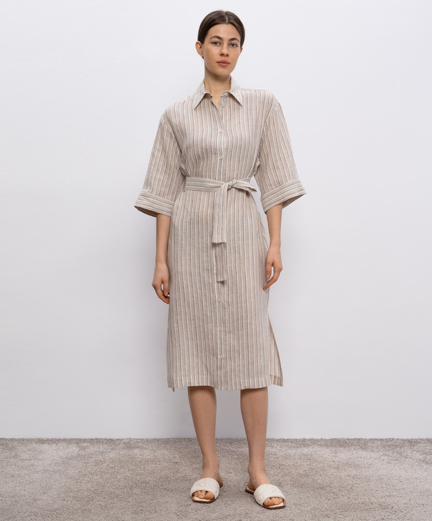 Бежева сукня-сорочка з льону в смужку