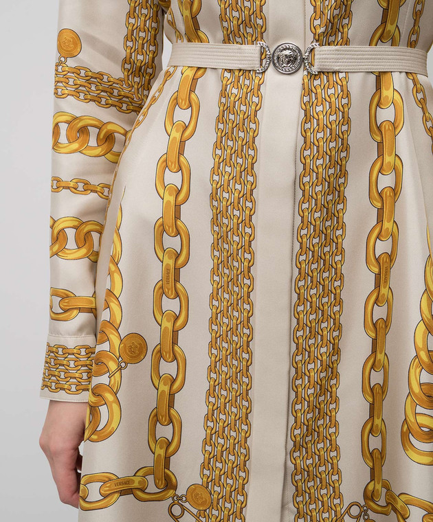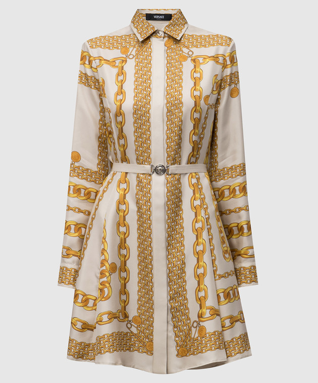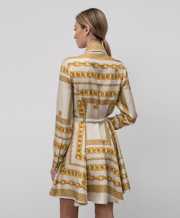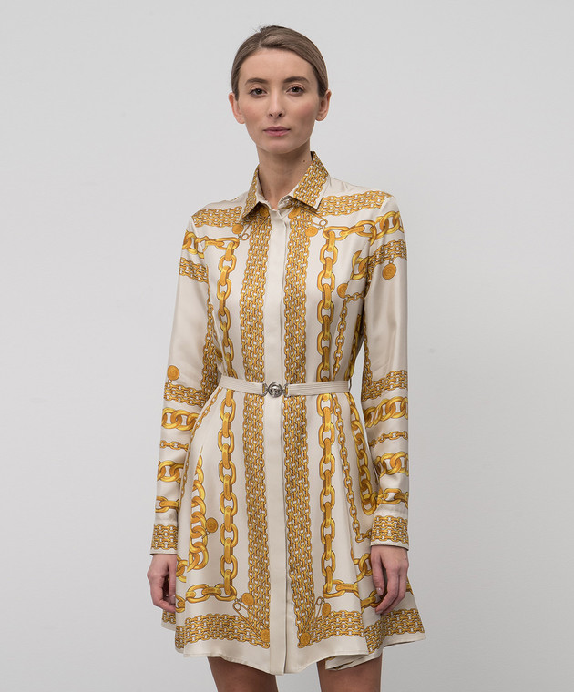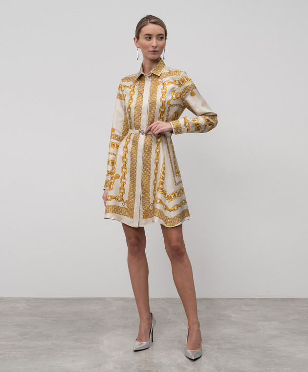 Бежева сукня-сорочка із шовку в принт