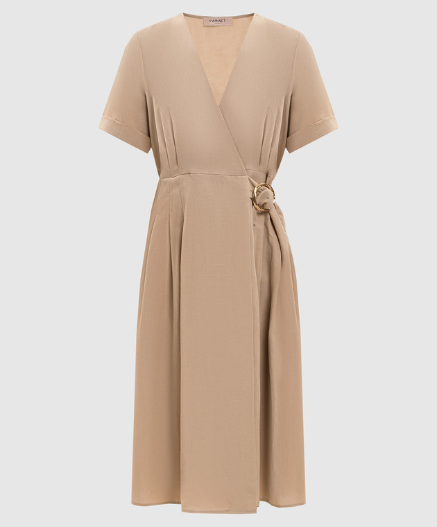 Бежева сукня з льоном