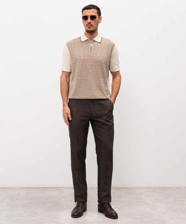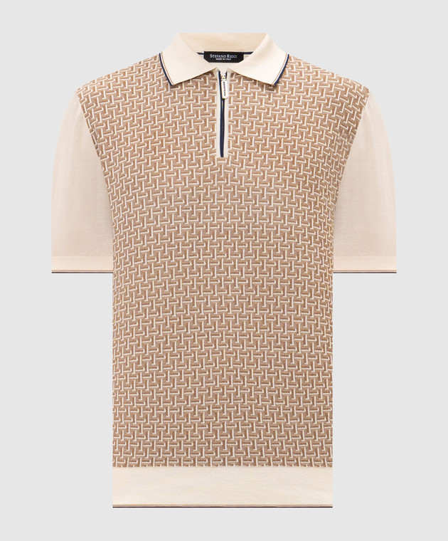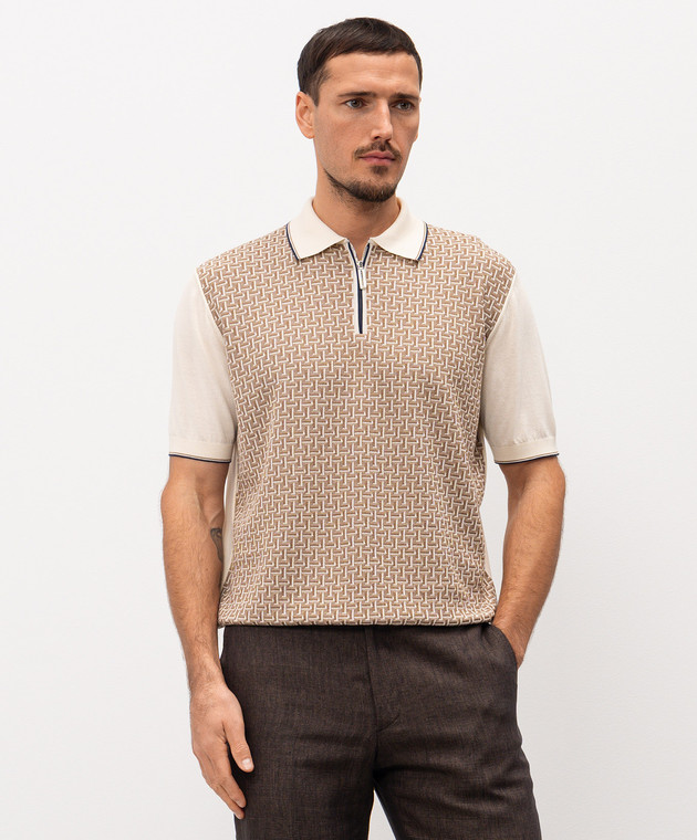 Бежеве поло з шовком у візерунок