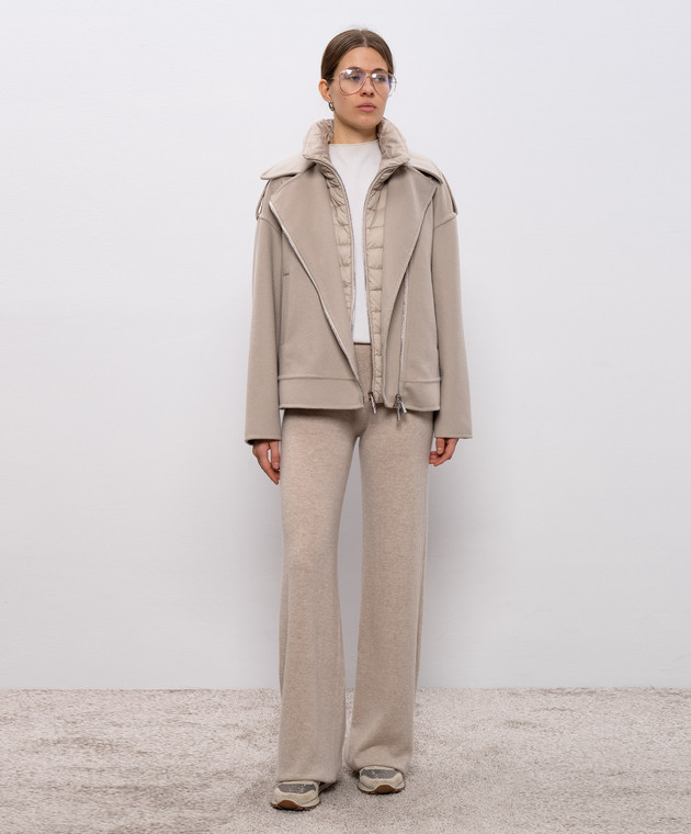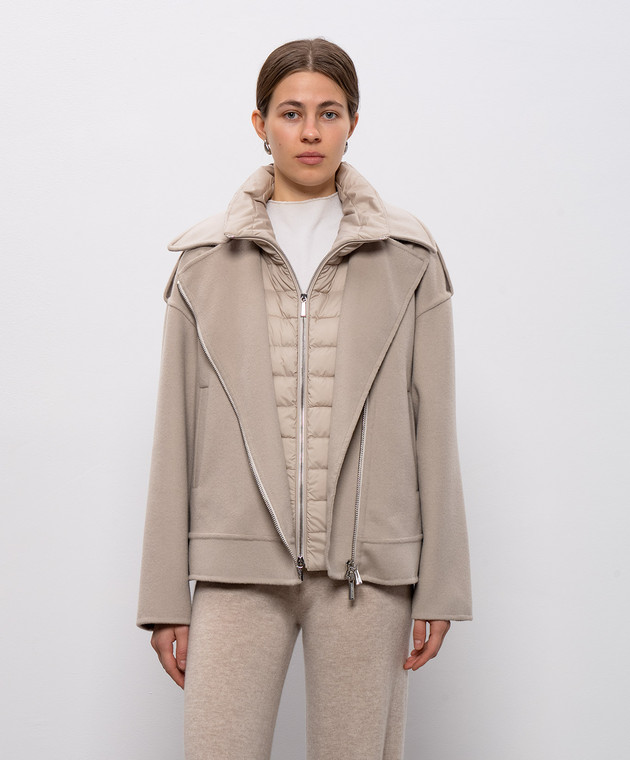 Бежеве укорочене пальто VIANA в стилі косухи з пуховим жилетом