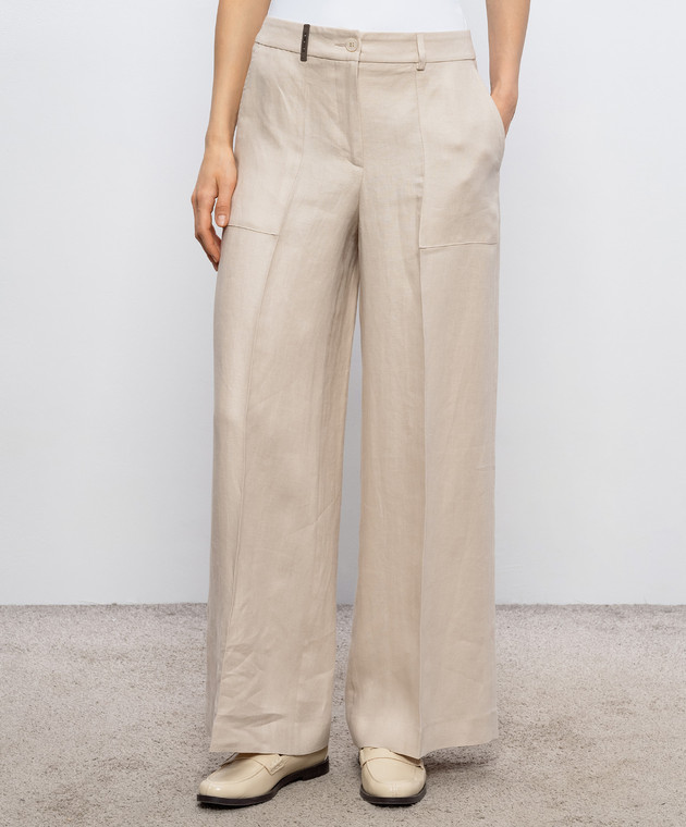 Бежеві штани з льону