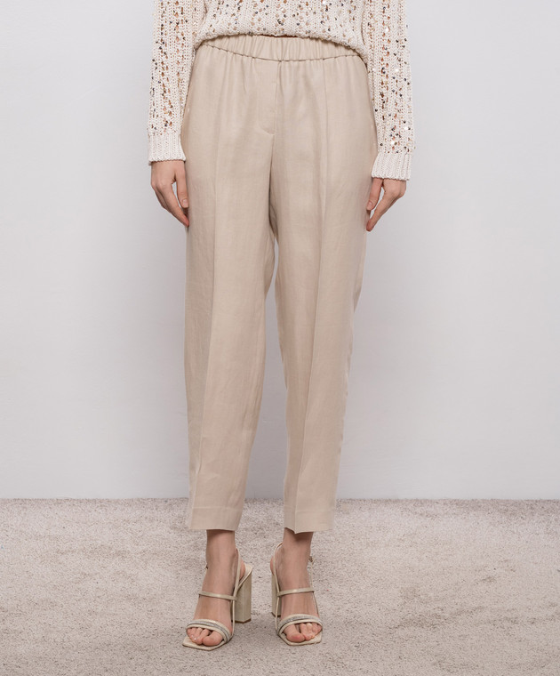 Бежеві штани з льону