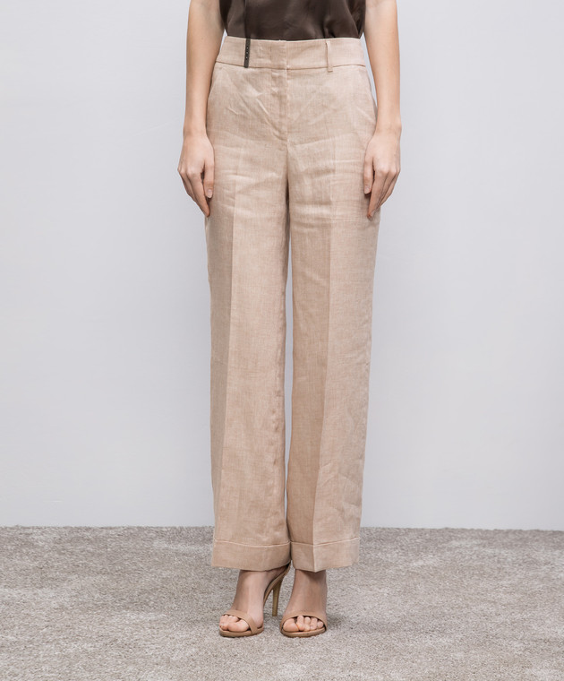 Бежеві штани з льону