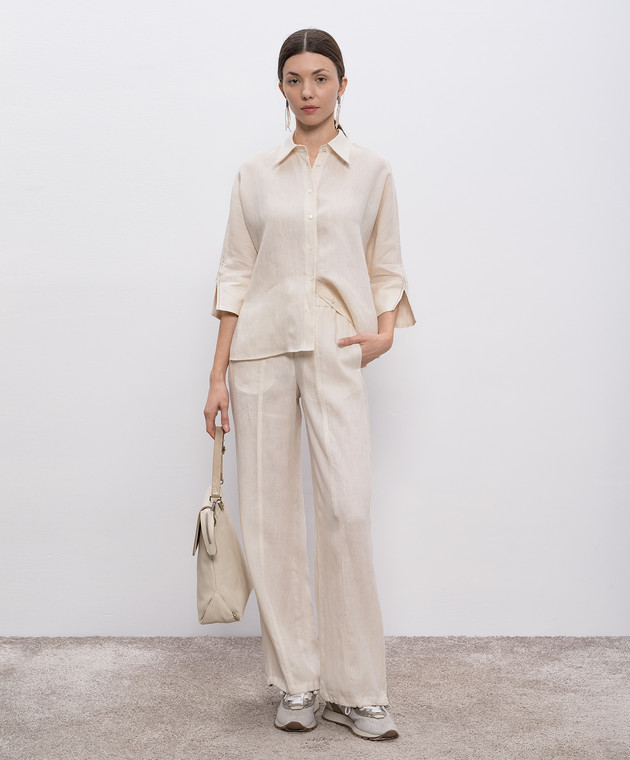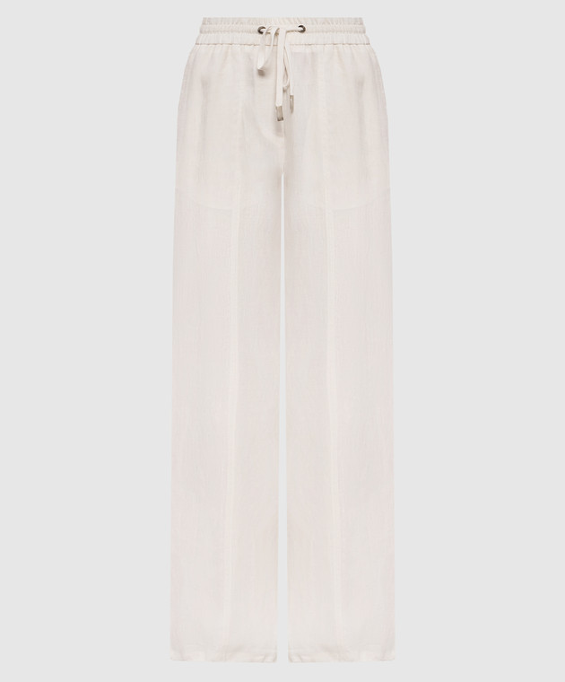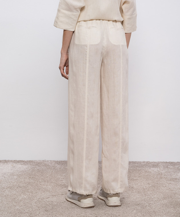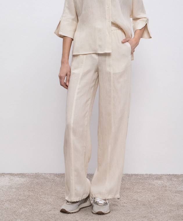 Бежеві штани з льону з логотипом