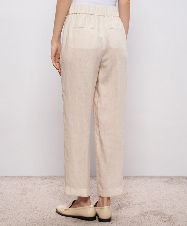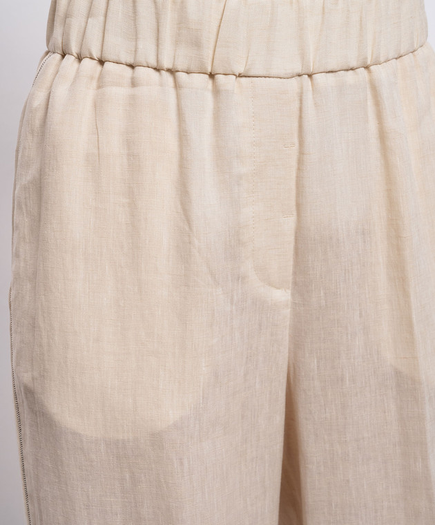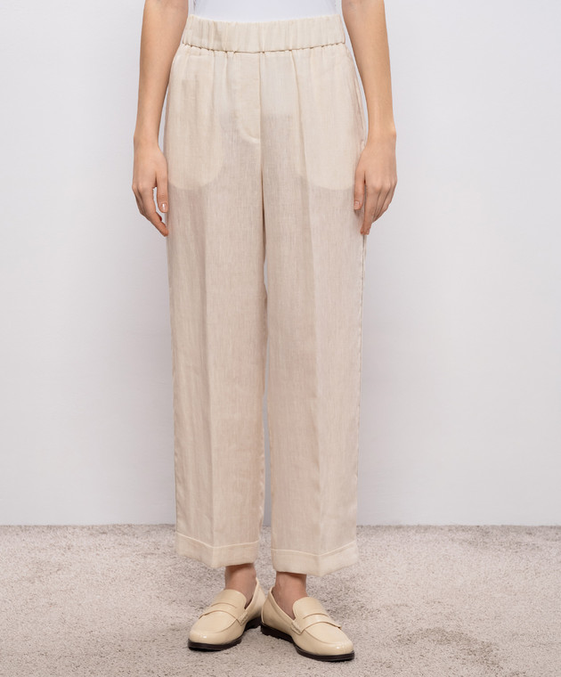 Бежеві штани з льону з відворотами