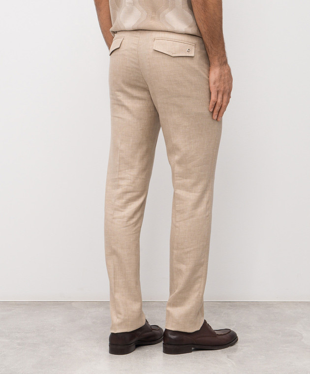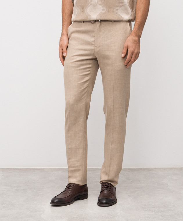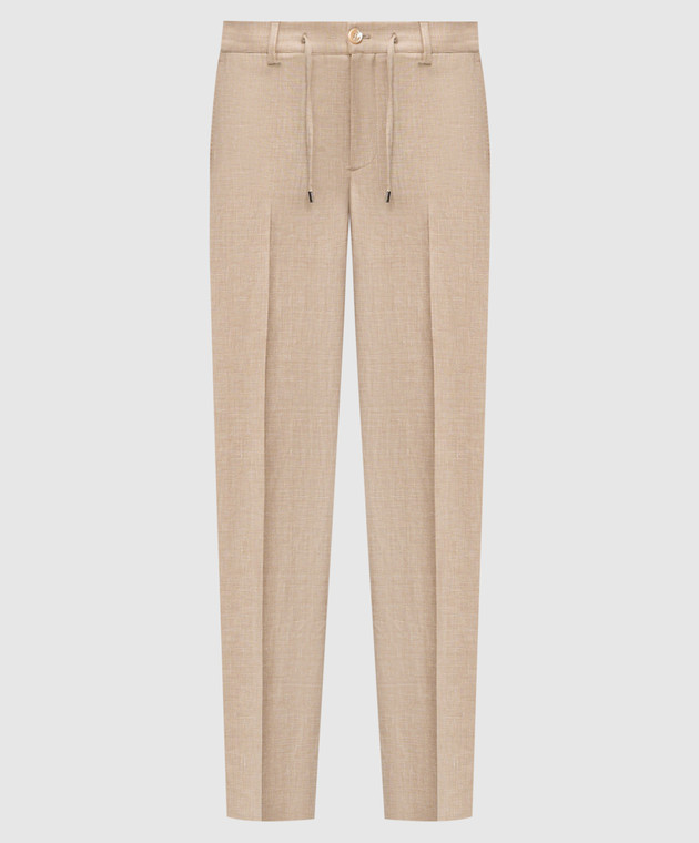 Бежеві штани з льону, вовни та шовку
